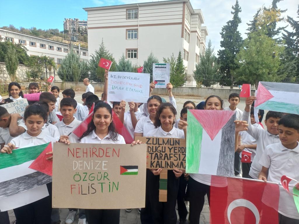 Okulumuzda 07 Ekim Salı günü okul bahçesinde "Filistin Farkındalık Etkinlikleri" kapsamında öğrencilerimiz tarafından resim. afiş, slogan vb. çeşitli etkinlikler tapıldı. Okul Müdürü Haydar COŞKUN tarafından Filistin için destek konuşması yaptı.